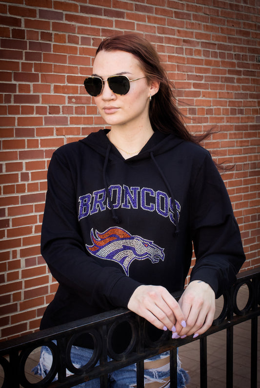 Denver Broncos Black Hoodie, Rhinestone Bling Broncos Sweatshirt