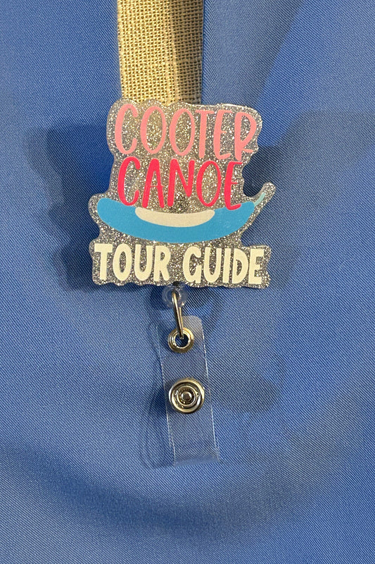Cooter Canoe Tour Guide Badge Reel, Retractable Badge