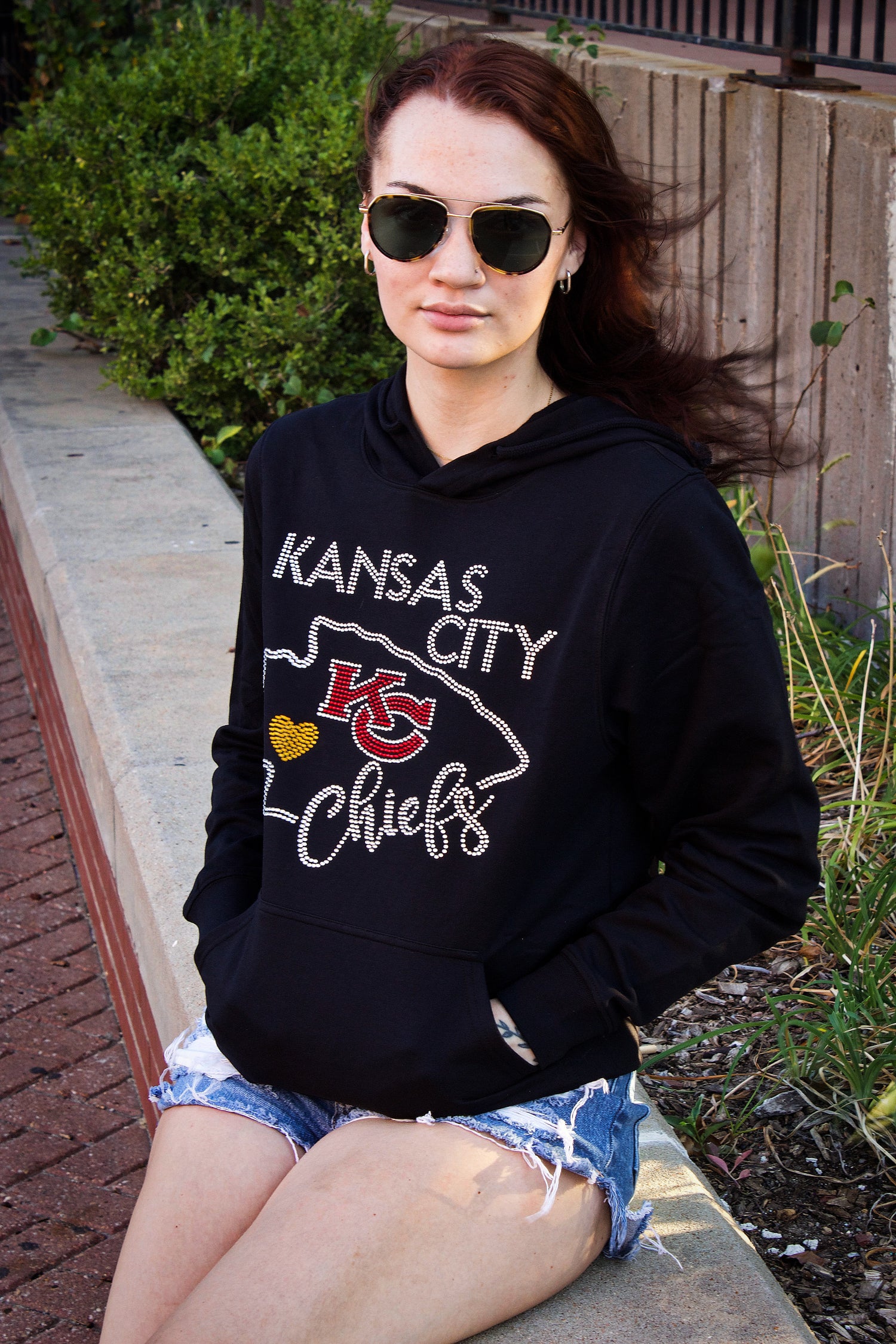 Denver Broncos Black Hoodie, Rhinestone Bling Broncos Sweatshirt